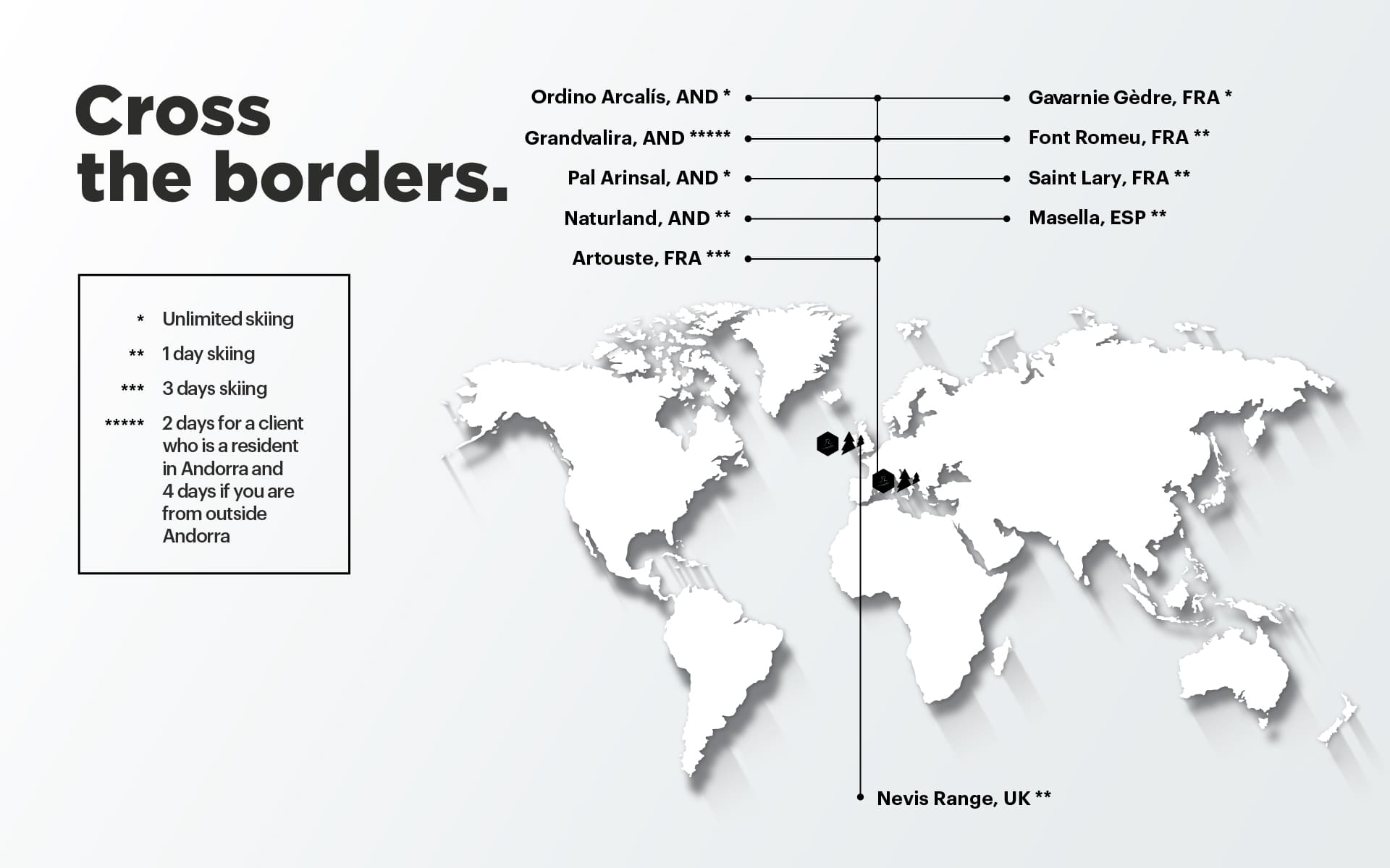 - Ski days at international resorts. Baby, Mountain Pass, Pedestrian, Freestyle, Baby, Sunday, Senior (70-74 years), Senior (+75 years), University, Extracurricular and Accompanying are excluded.