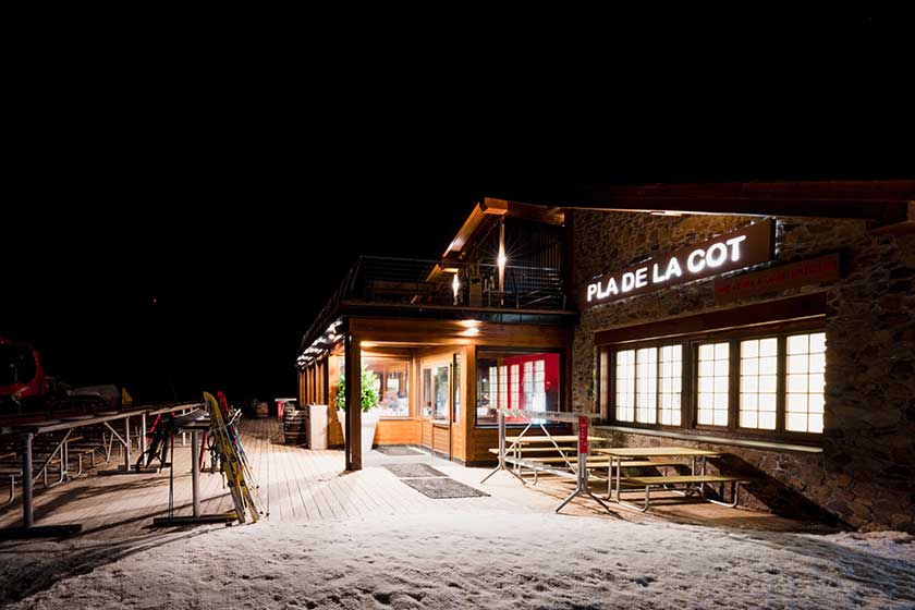 Situado en medio de las pistas, el Pla de la Cot es el lugar ideal para disfrutar de la montaña mientras se degustan fondues tradicionales y platos reconfortantes.