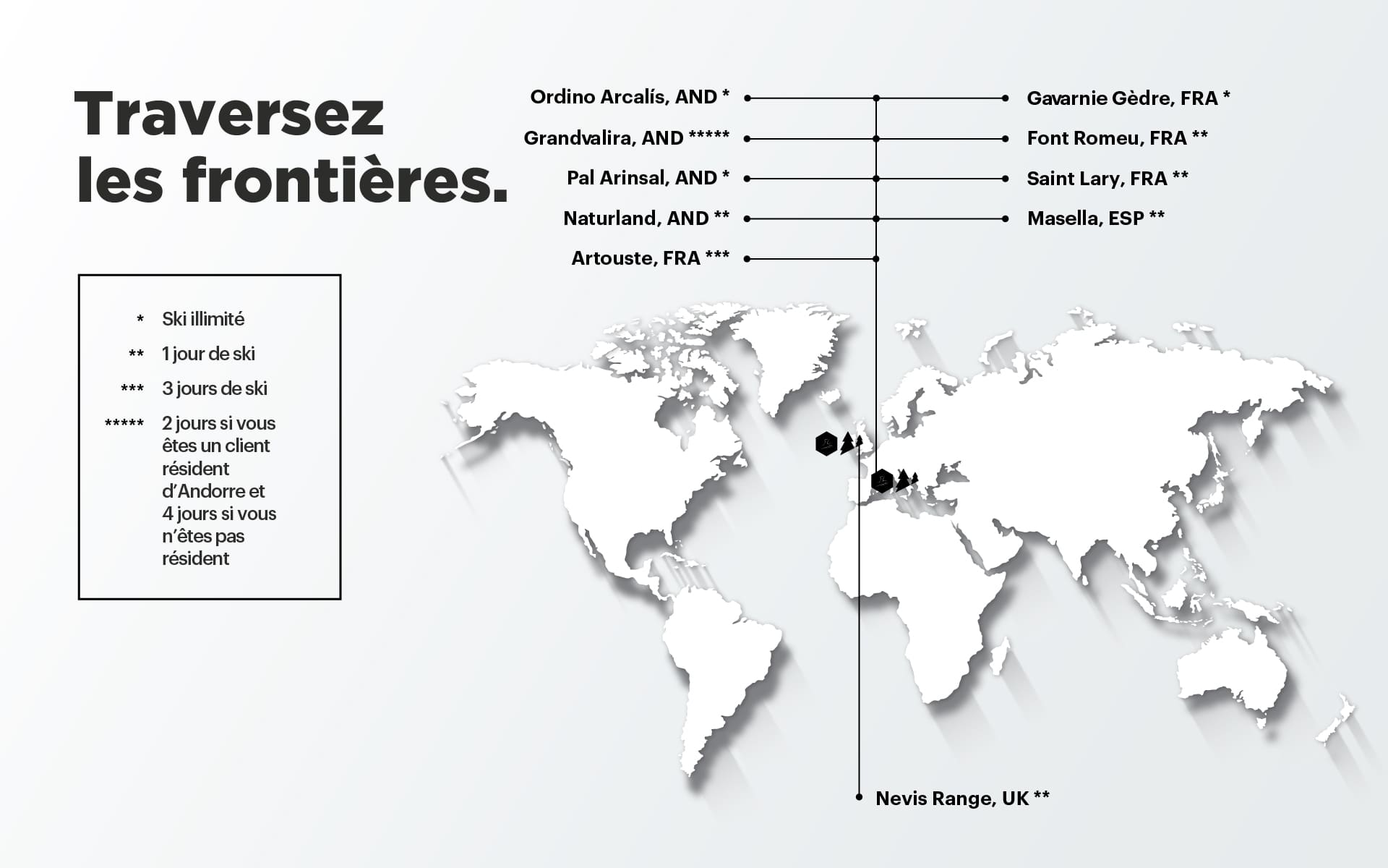 - Juniors et Enfants résidents en Andorre : ces catégories bénéficient d’un pass saisonnier Andorra Pass donnant accès à Grandvalira, Ordino Arcalís et Pal Arinsal. Il est obligatoire de présenter le passeport andorran ou un certificat de résidence communale de moins de trois mois.