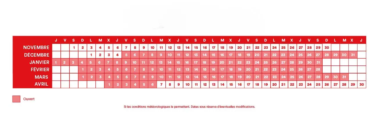 La station de Pal Arinsal est ouverte 10 mois par an et propose des activités de neige et de ski, ou des activités d’aventure et des circuits de VTT en été. Consultez ici les horaires de la station.